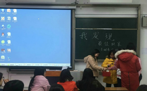 本次活动分上下两场,中途休息十分钟,进行抽奖活动,教科院的很多同学都踊跃报名了。参赛选手主要是15级和16级的教科院学生,首先由卡耐基会长余乐同学简单介绍活动流程后,参赛的选手按照抽签顺序上台陈述自己的议案。陈述过程中选手们语言流畅,能够从多方面多角度的论述论述妇女不平等现象,展示出教科院学子的不同凡响的语言风采。在环节一中,1504班的韩芸霄同学作为辩论队的队长,舌灿莲花,见解独到,引用了大量的史实来论证自己的观点;1602班的袁月芹、余星怡等同学还制作了精美的课件,运用了网络漫画、图标和数据来论证自己的观点。在环节二中,选手们针对其他选手的议案作出了自己的观点表述,引发了一场唇枪舌战,1505班的朱银洁同学从社会、政治、经济、文化、教育等各方面作出了综合阐述,内容丰富精彩,逻辑层次清晰;1610的倪佳锐同学更是语出惊人,深刻别样的看法赢得了在场观众及选手们的热烈欢呼。中场休息时间,本次活动还特设了抽奖环节,社团负责人为大家准备了精美的小礼品,可爱的小包包、精美的图书和笔记本,使同学们都能够积极参与其中。