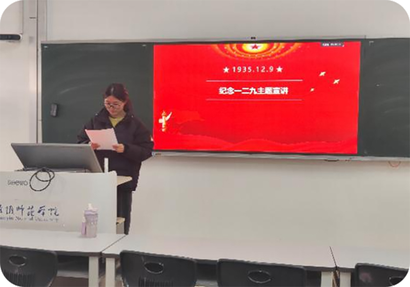 本次活动紧扣一二·九运动主题,创新设计“铭记一二·九红色故事我来讲”分享会与“镜头里的爱国情”随手拍征集两大板块,采用线上线下相结合的形式开展。线下分享会中,同学们纷纷走上台前,讲述一二·九运动的关键人物、经典事件及历史影响,并结合自身成长经历畅谈爱国精神的传承之道,现场辅以背景音乐、历史照片等元素,让宣讲更具感染力;线上随手拍征集活动则鼓励同学们聚焦与一二·九爱国精神相关的场景,捕捉身边的红色印记。