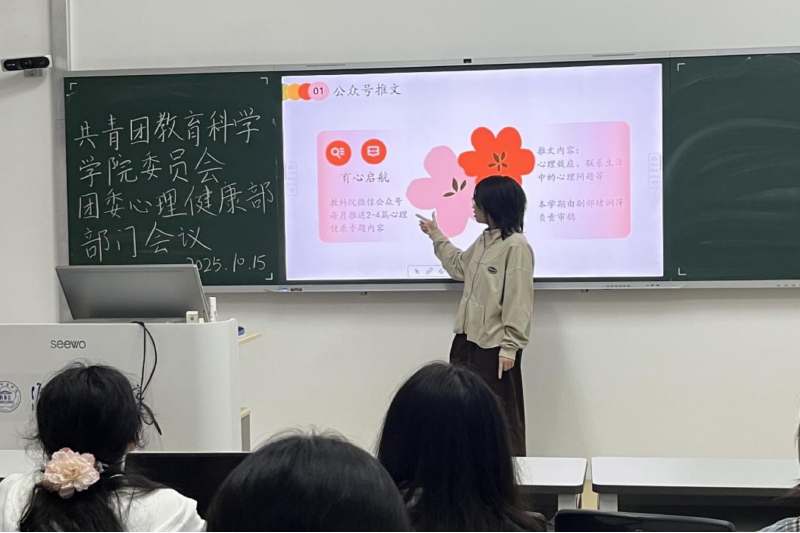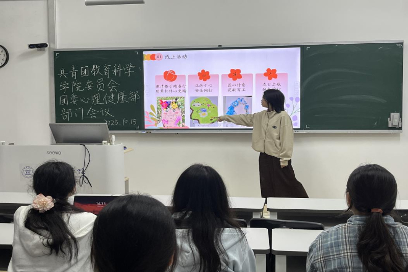 教科网10月16日电(记者 刘倩雯 朱晴雨)为复盘过往工作成效、加强团队凝聚力,为新学期工作注入全新动能,教育科学学院团委心理健康部于10月15日晚上在崇文楼1-103教室举办了心理健康部部门会议。会议由部长朱晴雨主持,教科院心理健康部部分干事参与。
