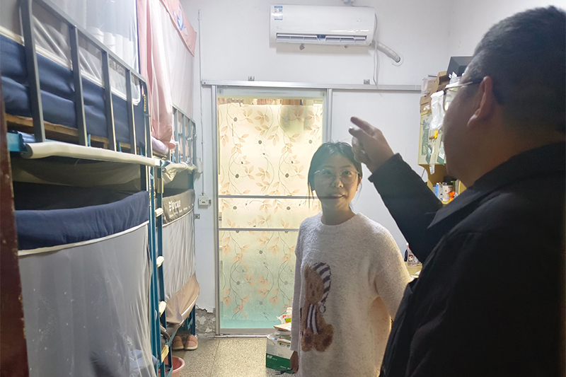 本次走访以环境整治和安全排查为重点,老师们逐间查看宿舍卫生清洁、内务整理、物品摆放情况,对私拉乱接、违规使用电器等安全隐患逐一排查提醒。针对卫生不达标的宿舍,现场指导整改方法、明确整改要求,引导同学们树立“宿舍是我家,文明靠大家”的理念,自觉遵守宿舍管理规定,共同打造安全、整洁、有序的居住环境。