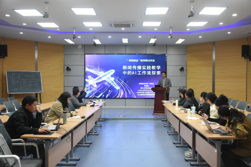 随后,李德顺围绕“新闻传播实践教学中的AI工作流探索”作专题报告,重点阐述AI技术融入课堂的教学设计思路。他结合前沿教学案例,突破传统实践教学的固有模式,从AI工具的选型适配、教学环节的融合设计到课堂效果的优化提升,为本次研讨注入了全新的技术应用视角。