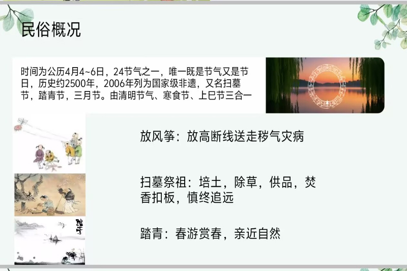 其二为“寻韵清明,解密民族”线下PPT展示活动。参赛同学围绕不同民族的清明习俗与春祭文化,精心制作PPT并进行现场演讲。一页PPT,讲述一个民族的故事;五分钟演讲,传递千年的清明回响。在本次线下PPT展示活动中,参赛同学围绕不同民族的清明习俗与春祭文化,精心制作PPT并进行现场演讲。选手们的选题丰富多元,既有对壮族三月三歌圩文化的讲述,也有对畲族乌饭祭祀仪式的解读;既有对苗族插柳踏青习俗的再现,也有对汉族扫墓追思传统的阐释。在展示形式上,选手们或聚焦单一民族,深入挖掘其文化意蕴,或采用对比分析的方式,呈现多民族清明文化的异同与交融。活动现场,选手们表达流畅、内容充实,在五分钟内将丰富的民族文化内涵浓缩于精彩的讲述之中。通过此次活动,同学们加深了对各民族清明文化的理解与认同,锻炼了信息整合与语言表达能力,在倾听与分享中领略了多元民族文化的独特魅力,进一步铸牢中华民族共同体意识。