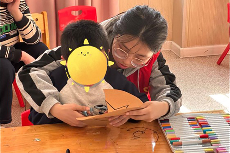 阳光透过窗户,落在孩子们认真的脸庞上,也落在志愿者们温暖的笑眼里。这场与地球的约会,不仅让孩子们在创作中感受自然之美,更让他们在陪伴中读懂了爱与守护的意义。而对“槐青”的志愿者们而言,这也是一次被童真治愈的旅程——原来,守护地球的种子,不仅能种进孩子心里,也能在青年的实践中,开出名为“责任”与“热爱”的花。