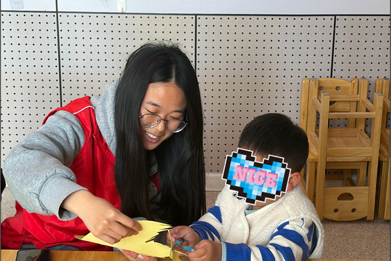 图为志愿者帮助孩子们进行剪纸。记者 周子毓 摄